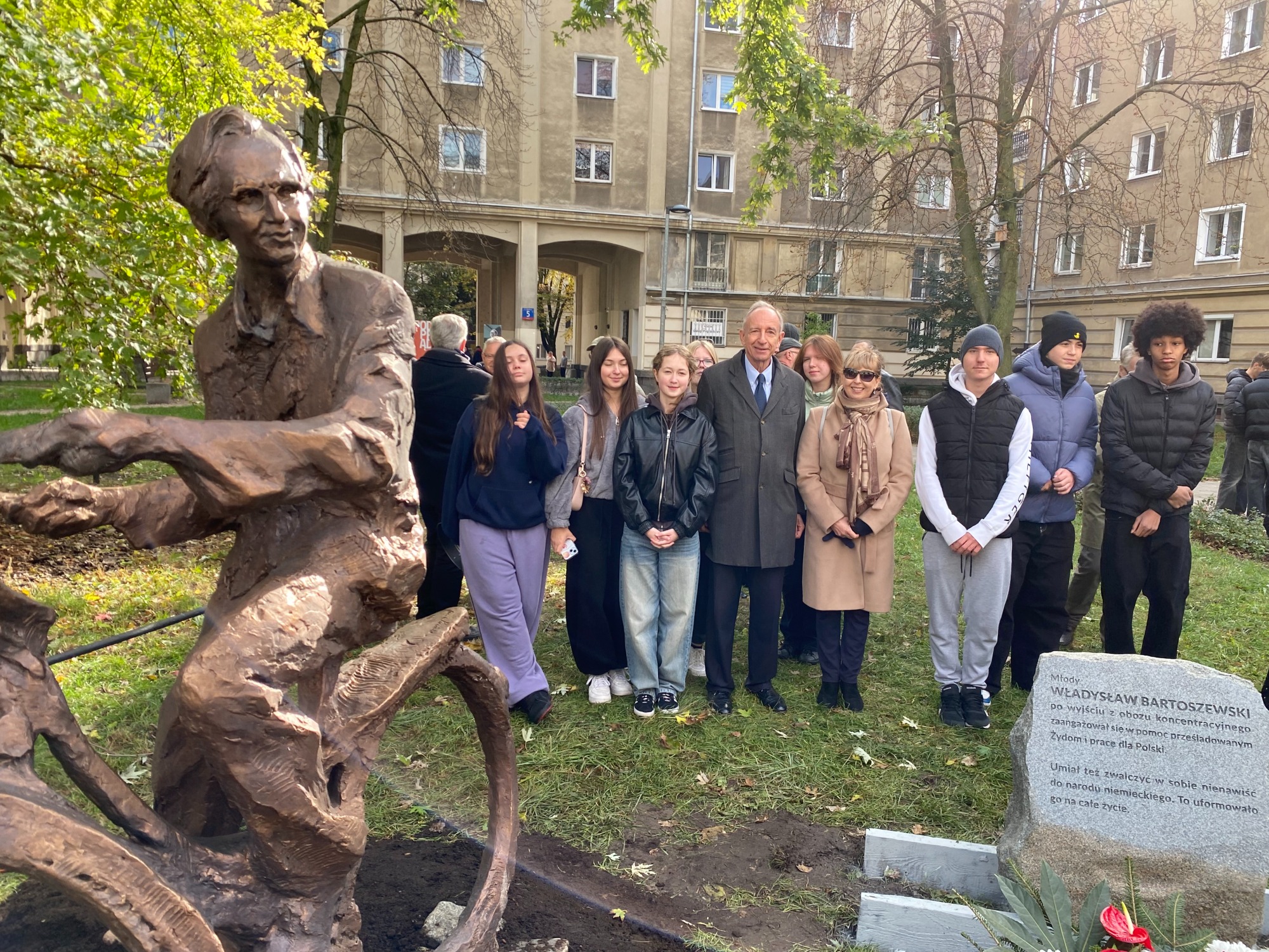 W niedzielę w samo południe na skwerze im.Władysława Bartoszewskiego mieliśmy zaszczyt uczestniczyć w uroczystym odsłonięciu pomnika patrona naszej szkoły.